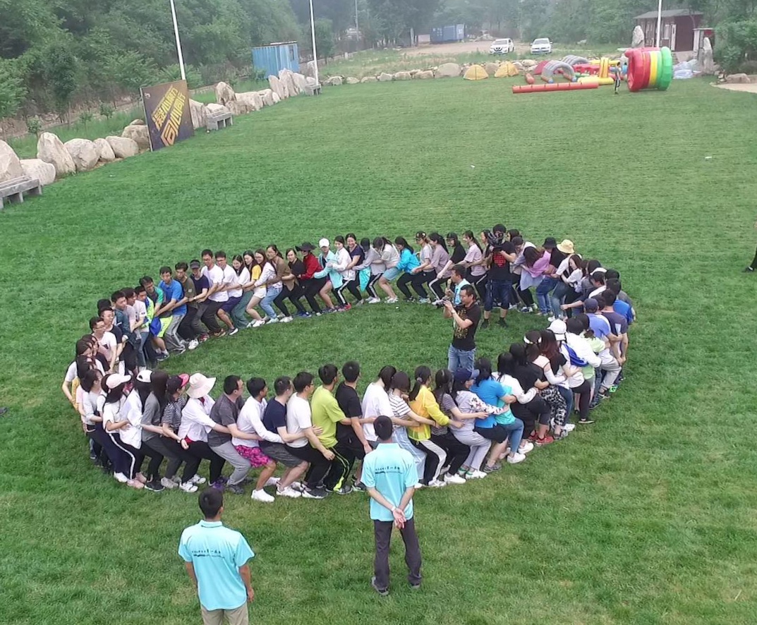 在破冰环节,全体师生围成圆形,脚尖对着脚跟,半蹲坐在后面人的大腿上,整齐划一地小步挪动,让这个“同心圆”旋转起来。极富特色的“同心圆”破冰活动,加上妙趣横生的按摩式热身之后,素质拓展训练正式拉开帷幕。为达到提升个人身体素质与增强团队合作意识的双重目的,素质拓展分为强调合作的“活动竞技”和重视感受的“个人体验”两个环节。“活动竞技”环节,主要以趣味运动会形式展开。师生党员被随机分为四组,在构思队名、设计队旗以及团队展示的过程中,彼此认识、相互熟悉。