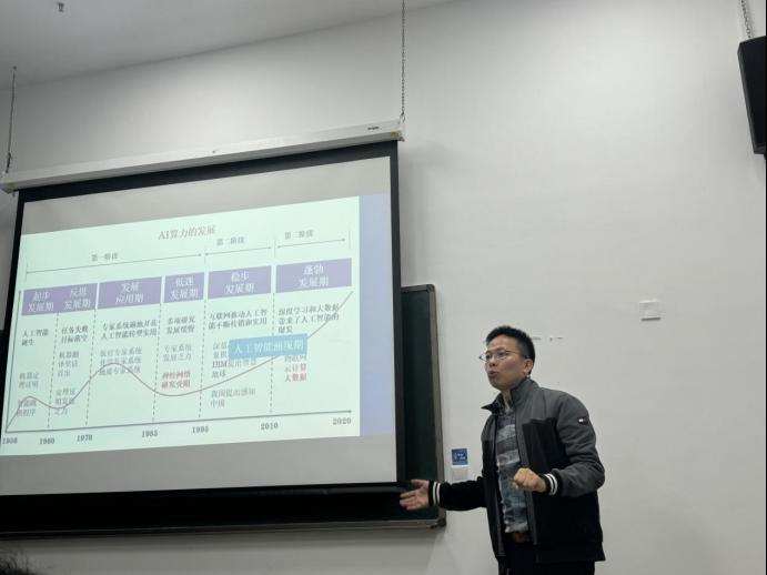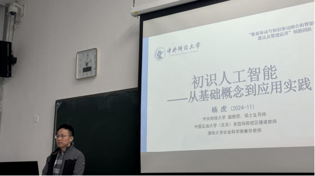 2024年11月20日下午2点,金沙js9线路中心信息学院副教授杨虎老师受金沙js9线路中心邀请在沙河校区主教104教室开展了题为《初识人工智能——从基础概念到应用实践》的专业讲座。本次讲座由风险管理与保险系主任马冰副教授主持,金沙js9线路中心联培班大一全体学生和其他班部分学生参加了本次学习。
