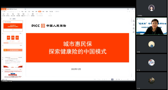 第三位演讲人是人保资深专家兼副总经理杨慧晶女士,她首先介绍了惠民保的发展历史,其产品特点为一城一品,价格普惠;模式特点为以政府指导为准则,遵循商业保险经营规律;而运营特点则为通过多方合作,线上线下融合销售。作为惠民保承保公司的项目负责人之一,杨女士就人保财险惠民业务发展的情况、各地项目案例进行介绍,并在演讲最后进行展望,认为在未来1-2年内惠民保会覆盖全国的主要城市,在解决统一定价的逆选择风险、行业声誉和舆情风险等问题的同时,通过丰富保险责任提供更实用的增值服务,通过科技赋能强化服务提供形式。