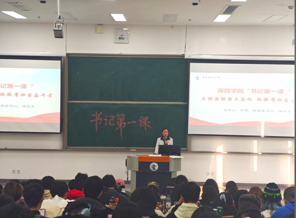 随后,吕丽书记带领新生共同学习了党的二十届三中全会精神和全国教育大会精神。她强调,党的二十届三中全会是在中国式现代化全面推进强国建设、民族复兴伟业的关键时期召开的一次十分重要的会议。全会审议通过的《决定》首次提出了“数智化”概念,并多次提到了“保险”,为保险领域的未来发展指明了方向。