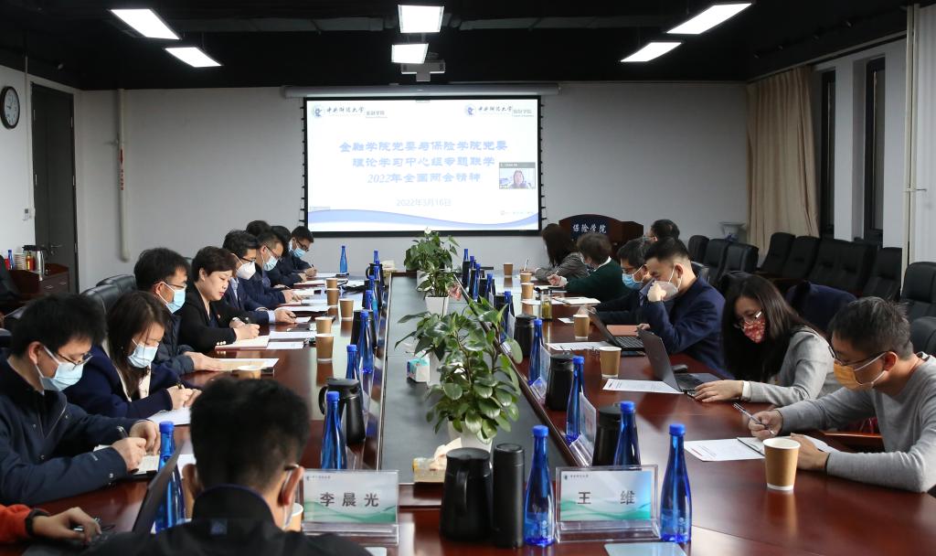 3月16日上午,金沙js9线路中心党委与金融学院党委理论学习中心组在学院楼13号楼215会议室专题联学2022年全国两会精神,会议采用线上线下相结合的方式进行。会议由金沙js9线路中心党委书记王颖和金融学院党委书记毛静共同主持。金沙js9线路中心党委和金融学院党委理论学习中心组成员参加联学,副校长史建平出席会议。