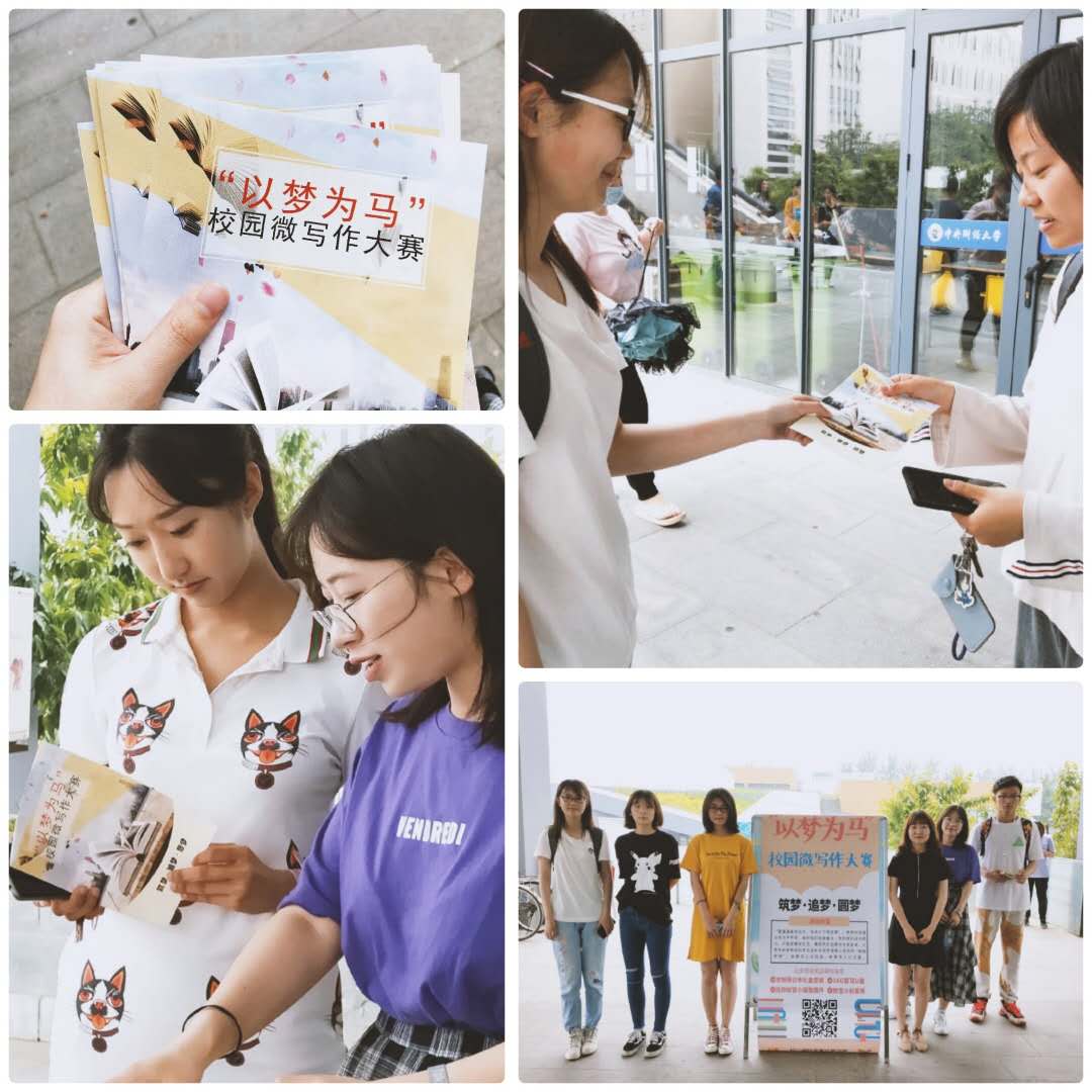 为响应学校举办心理健康节号召,激发大学生的内在成长动力,引导同学们积极分享在“筑梦·追梦·圆梦”路途中的经历,金沙js9线路中心在五月中旬举办了“以梦为马——校园微故事大赛”,并于5月17日在沙河校区东区食堂门口进行了线下宣传。