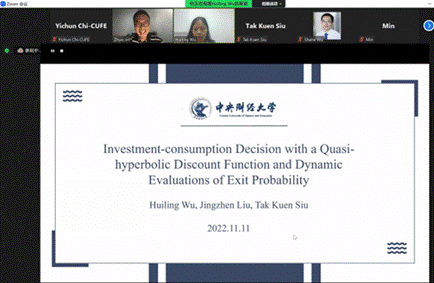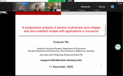 我院与麦考瑞大学精算研究和商业分析系联合举办的线上研讨会于2022年11月11日顺利举行。此次研讨会由麦考瑞大学的Zhuo Jin教授以及我院的郑敏老师主持,邀请了澳大利亚新南威尔士大学、墨尔本大学、麦考瑞大学以及我校共六位专家学者就保险、养老、投资、消费等诸多领域进行了学术分享。