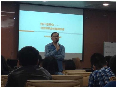 最后,陈戈博士介绍了精算师在资产证券化中可以承担的作用,对精算师从事的工作和资产证券化要求的工作进行了对比,并邀请了目前在其部门实习的张晋同学简要介绍了自己的看法。